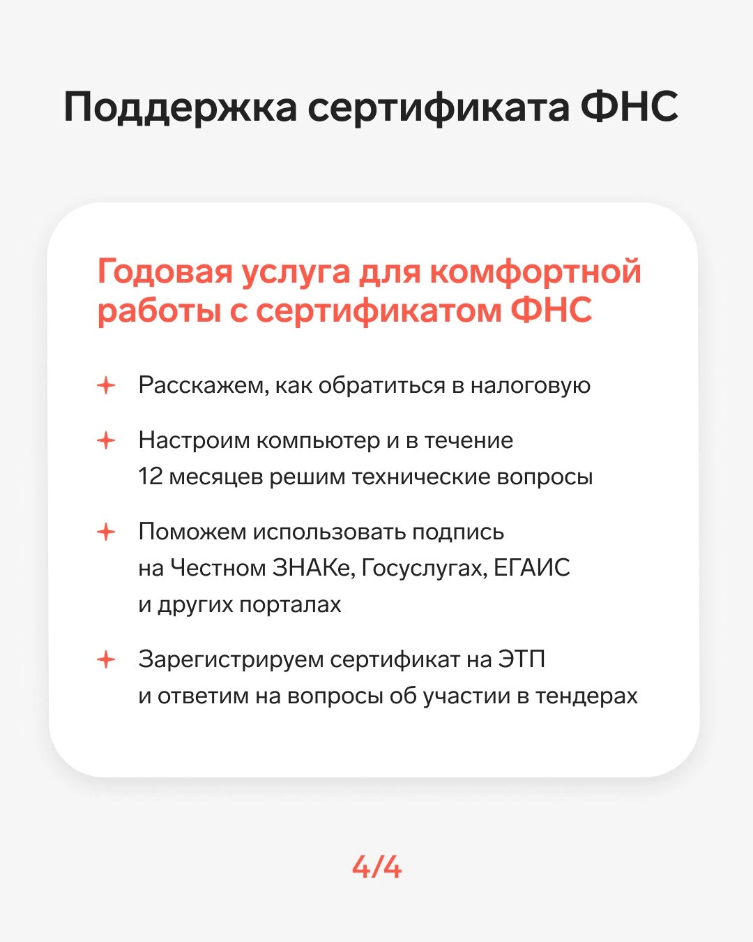 Как обратиться за новыми сертификатами ЭП, рассказали в карточках. А если вам нужна помощь с получением сертификата ФНС и его дальнейшее обслуживание — можете заказать услугу поддержки от Контура  https://clck.ru/apfZn